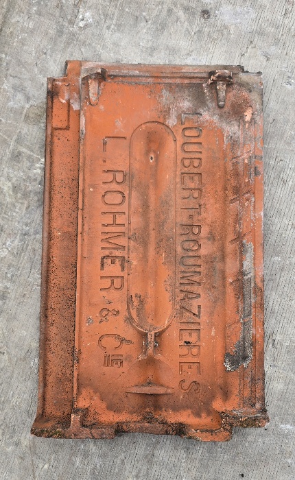 Reclaimed Interlocking Belgium/French Clay Roof Tiles Available. Loubert Roumazières, L. Rohmer & Co. Aprox 600. £3.00 Each